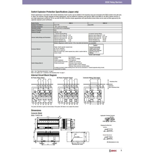Highlight : 16-Input Chan-sink IDEC EB3C-T16CKDN, 30V Rated Voltage IDEC EB3C-T16CKDN, 24VDC Operating Voltage IDEC EB3C-T16CKDN