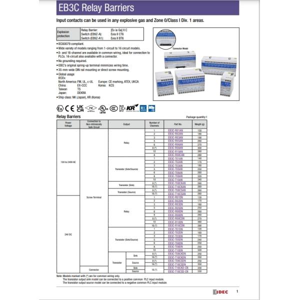 24VDC Operating Voltage IDEC EB3C-T16CKDN 16-Input Chan-sink 30V Rated Voltage 1